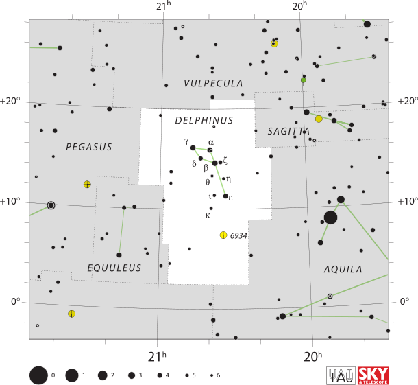 In Greek Mythology, the Greek god Poseidon wanted to marry Amphitrite. She fled to the Alas mountains wanting to protect her virginity. Delphinus accidently found her and persuaded her to accept Poseidon's proposal. Out of gratitude the god placed the image of the dolphin into the night sky.