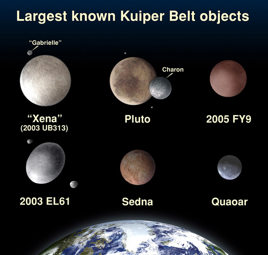 The largest KBO is Pluto. Once thought to be a planet, Pluto is now one of several dwarf planets in the Kuiper belt.